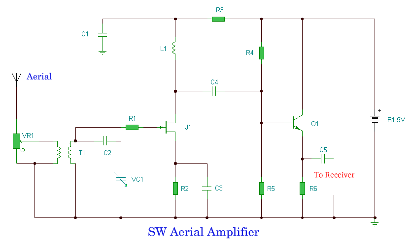 A radio frequency amplifier to boost SW reception. Frequency range approximately 5 to 20 MHz.